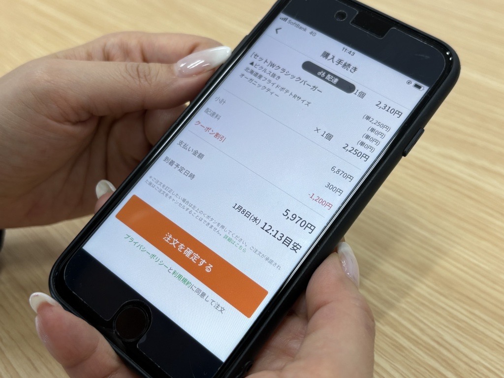 カートの金額が問題なければ、画面下部の「注文を確定する」をタップしてオーダー完了!