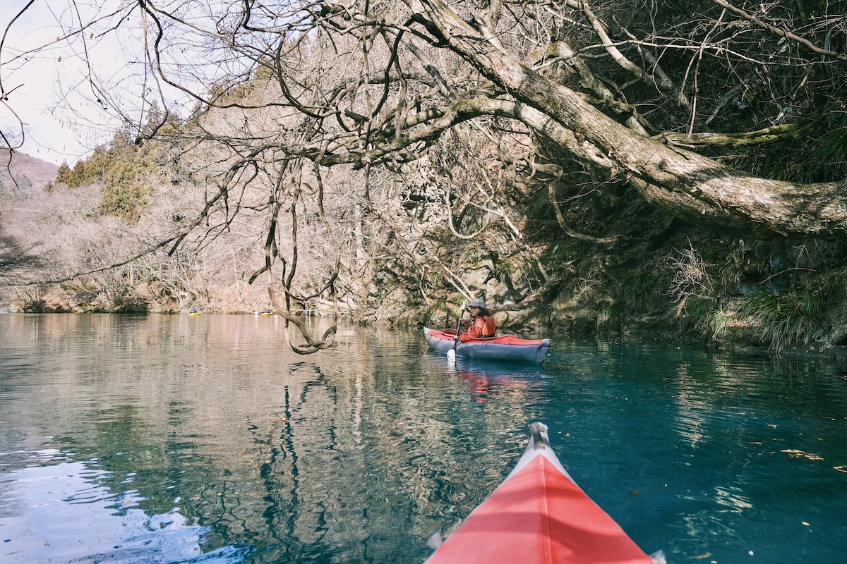 冬カヌーにいざ出発! 透明度バツグンの四万湖ブルーにうっとり