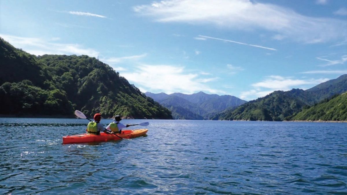 さらに、只見ではカヤックで人造湖を探検することもできるんです! 田子倉ダム(たごくらだむ)によってできた巨大な人造湖で、ガイドさんとともにカヤックを体験。湖を囲む自然と一体化したような爽快感が味わえるおすすめのアウトドアアクティビティですよ。