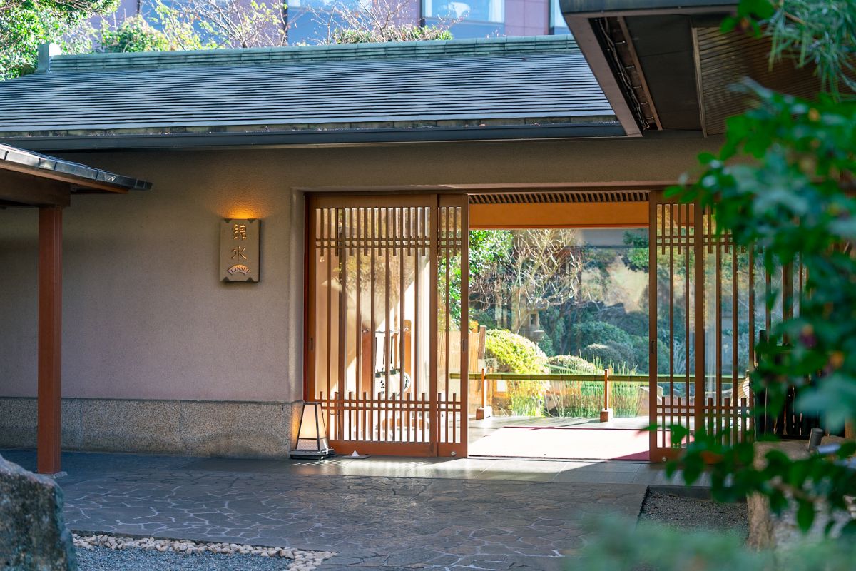 今回の会場は、大都会とは思えぬほど美しい庭園をはじめとした、四季折々の風景美が魅力の一流ホテル「ホテル椿山荘」にある料亭「錦水」。庭園内の雲錦池畔に建つ数奇屋造りの料亭で、1987(昭和62)年のオープン以来、素材を活かし季節を感じる伝統的な会席料理を提供してきました。