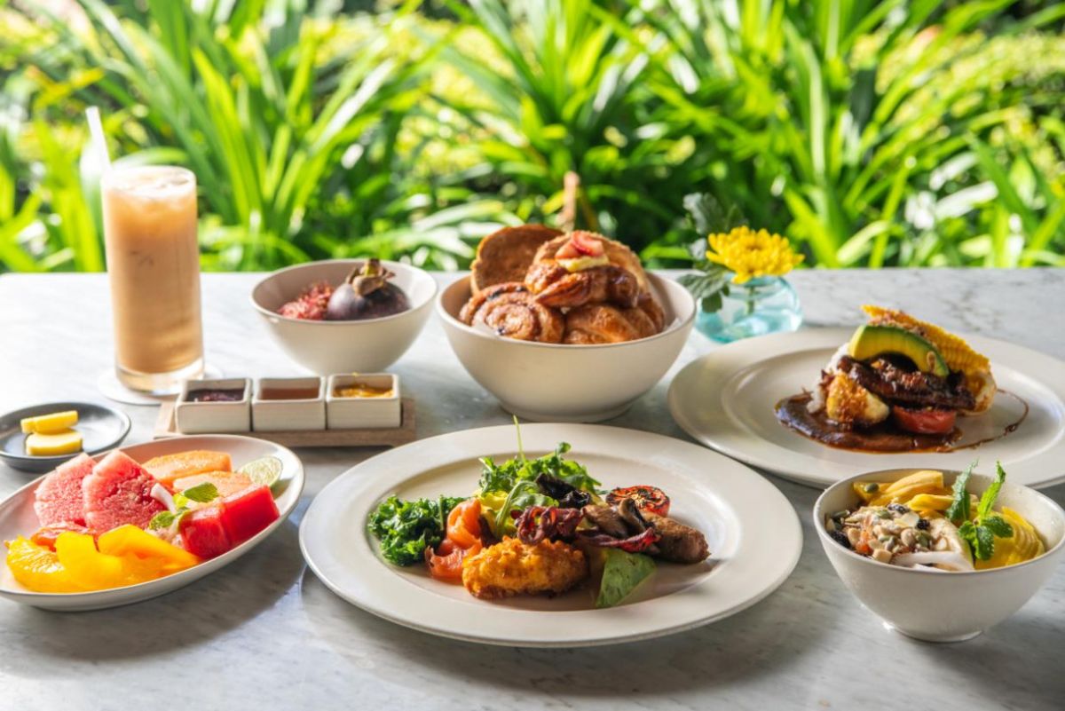 朝食は、メインはオーダー式、ドリンクやフルーツなどはビュッフェ式です。 メインはバリ伝統料理から、洋食など幅広く20種類以上の選択肢が。コモ シャンバラ キッチンのヘルシーメニューも楽しむことができます。