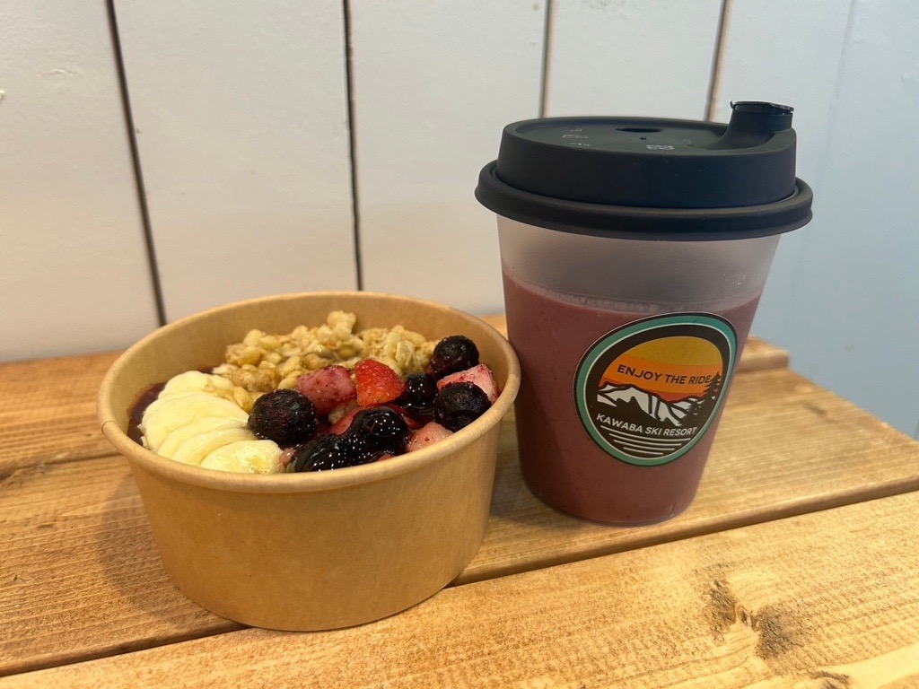 写真のメニューは、同じく「ビーチ」の「アサイーボウル」(1300円)と「アサイースムージー」(1000円)。生乳をぜいたくに使った「川場のむヨーグルト」と、地域で生産されたフルーツからできた一品です。