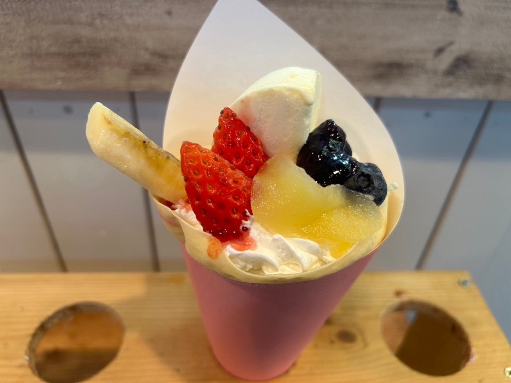 「ガールズトリップパッケージ」についているのは、「カワバシティ」の7階にある「ビーチ」のクレープ。クレープ「ビーチ」には、定番かつ人気メニューの「バナナチョコ生クリーム」(800円)、「川場スペシャル」(1100円)から、おかず系の「ハムタマクレープ」(800円)まで、さまざまな種類のクレープがあります。休憩中やスノーボードを楽しんだ後は、お腹が空くもの。おいしいクレープをお得に食べられるのは、うれしいですね♪