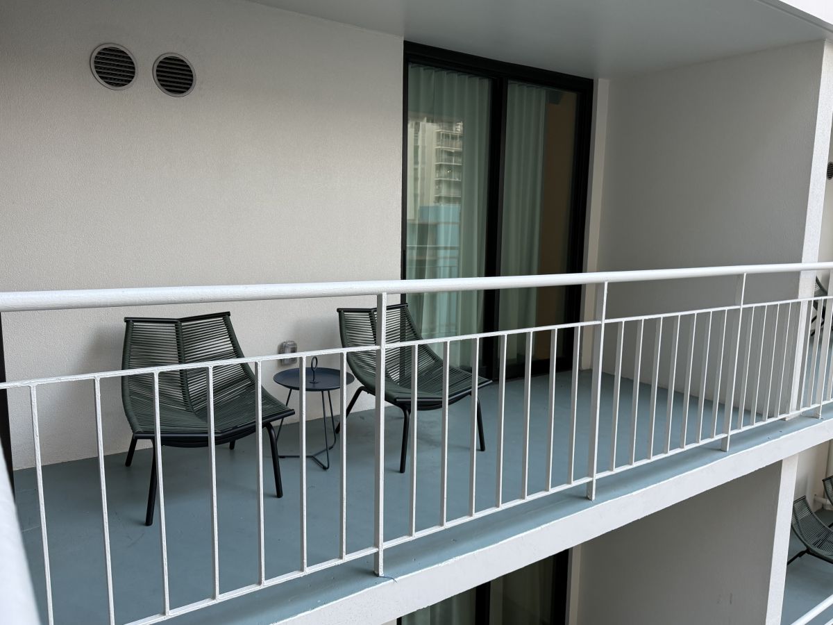 広々としたベランダからは、眼下にBackyardのプールを見下ろすことができます。ここでコーヒーを飲んだり、朝食を楽しんだりするのも素敵ですね。