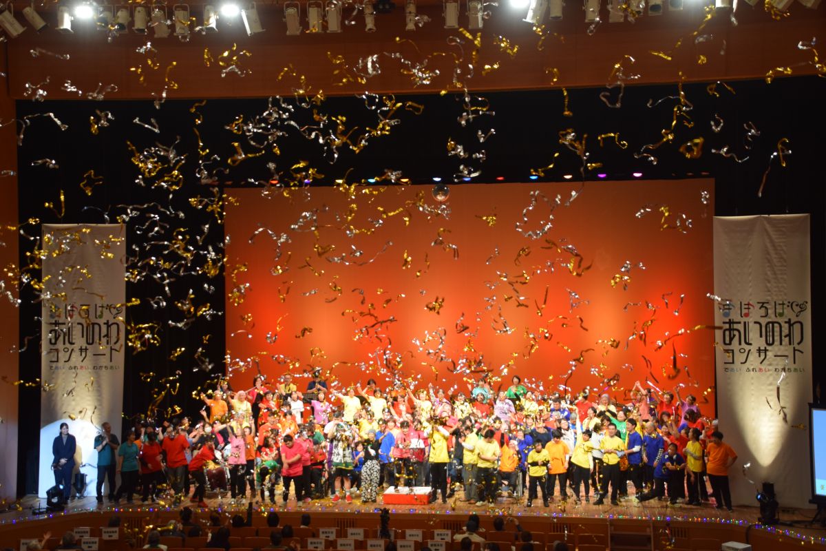 音楽監督にマリンバ奏者の松本真理子さんを迎え、この日のために結成された「まほろばあいのわ」合唱団によるステージや、スペシャルゲストのパフォーマンスも披露され、テーマのとおり会場が一体となった「笑顔」がはじける大盛り上がりを見せました。