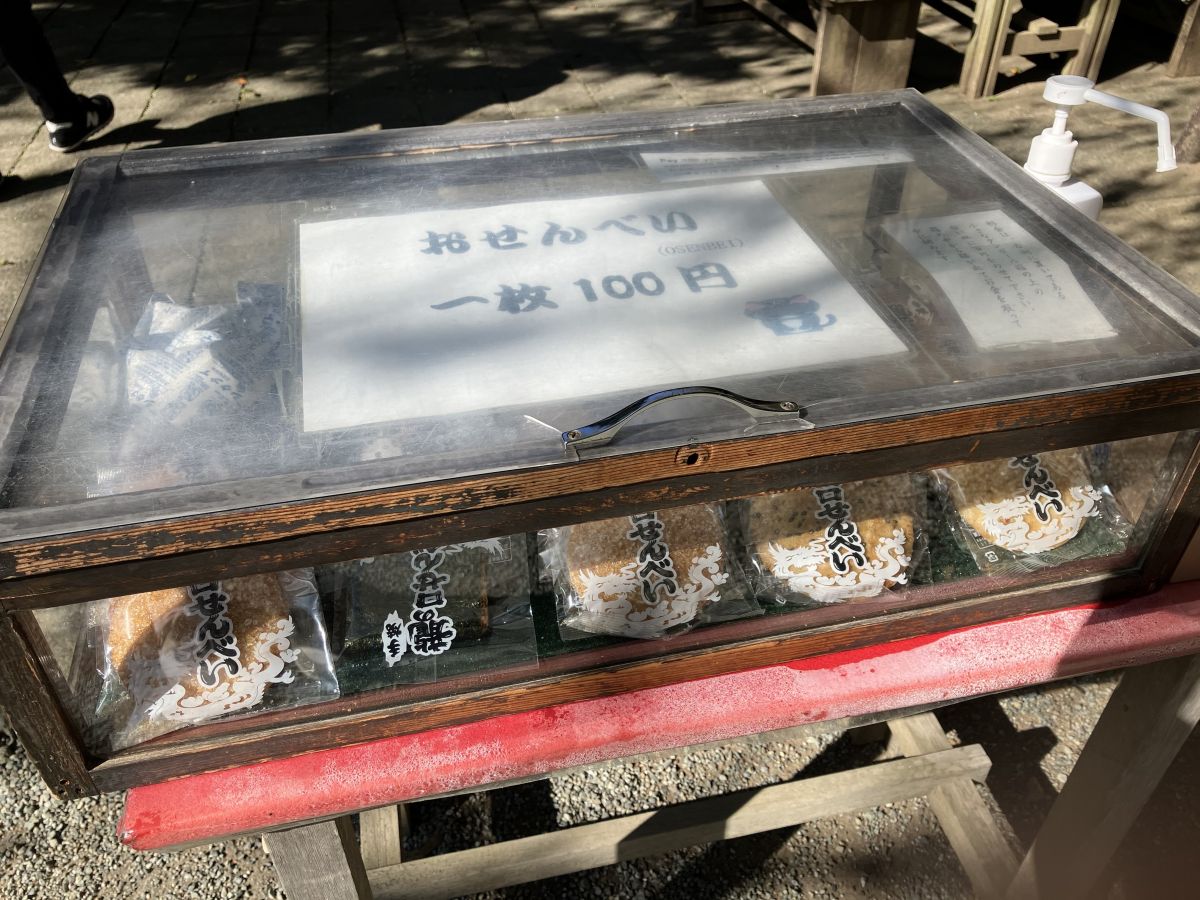 境内ではおせんべいを販売していました。山歩きの後に食べるおせんべいは一味違うおいしさが!