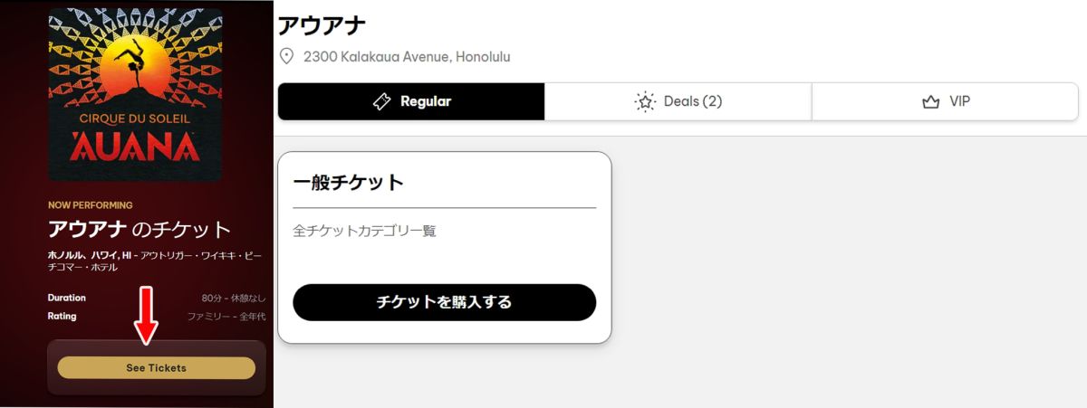 「シルク・ドゥ・ソレイユ アウアナ」のチケット購入方法
