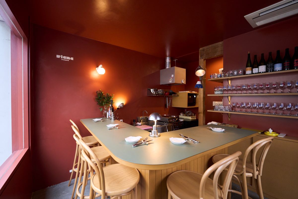 店内は外観と同じ温かみのあるブラウンが基調。肩ひじ張らないカジュアルさと「パリのビストロみたい」と思わせる洗練された雰囲気があり、こぢんまりした空間に心地よい空気が流れています。初めて来たお店なのに、すっかりくつろいだ気分になれました。