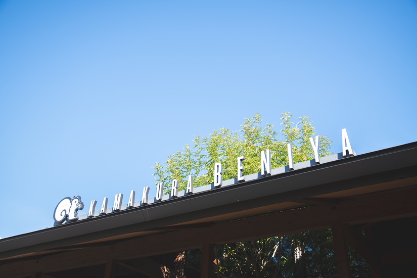 JR鎌倉駅から小町通りを歩いて5分、横道に逸れた先に見えてくるのが「鎌倉紅谷 小町横路店」。2024年2月にオープンした店舗で、正面の看板には「クルミッ子」のパッケージにも描かれているリスが掲げられています。
