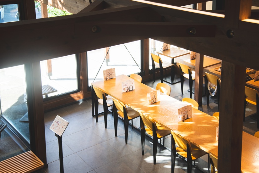 午前中のカフェ利用は予約優先で、80分ごとの入れ替え制。来店時に空席があれば予約なしでも利用することができますが、入れ替えの時間になると滞在時間が80分に満たなくても一度退店する必要があるため、公式HPから予約をしておくのがベターです。午後は、1階席は13時以降、2階席は13時30分以降であれば、予約なしで利用できます。