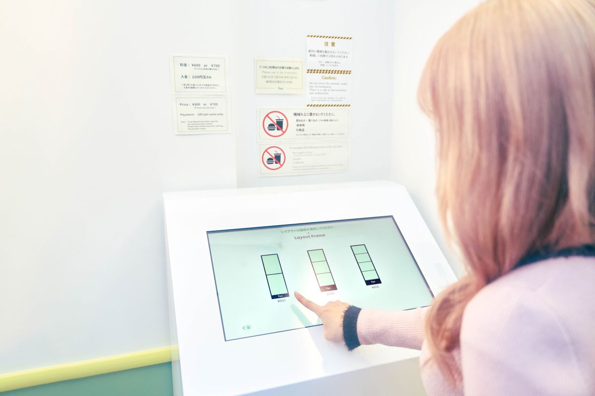 撮りたいプリクラのブースに移動したら、まずはお金を入れてサイズやシールの枚数を選択!