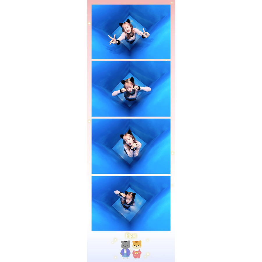 次にトライしたのは、青い空間が印象的な「ハヌルショット」。「ハヌル」とは、韓国語で「空」という意味。その名のとおり、空をイメージして作られた空間が広がります。いったいどんな写真が撮れるのか、ドキドキしながら撮影へ。