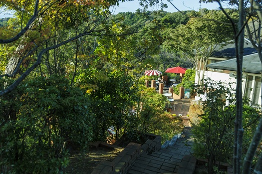 実は、整備のきっかけとなったのは、背後の山を通る「葛原岡・大仏ハイキングコース」。道に迷ったハイカーなどがたびたび別荘を訪ねてきたことから、休憩場所として小さなテラスを設けたことに始まったのが「樹ガーデン」なのです。そこから約40年、業態を変えつつ現在まで営まれてきました。今でもハイキングコースを行き交う人たちの休憩スポットとして親しまれており、取材時も休憩するハイカーの姿がちらほら見えました。