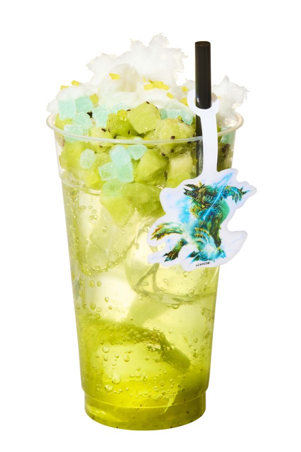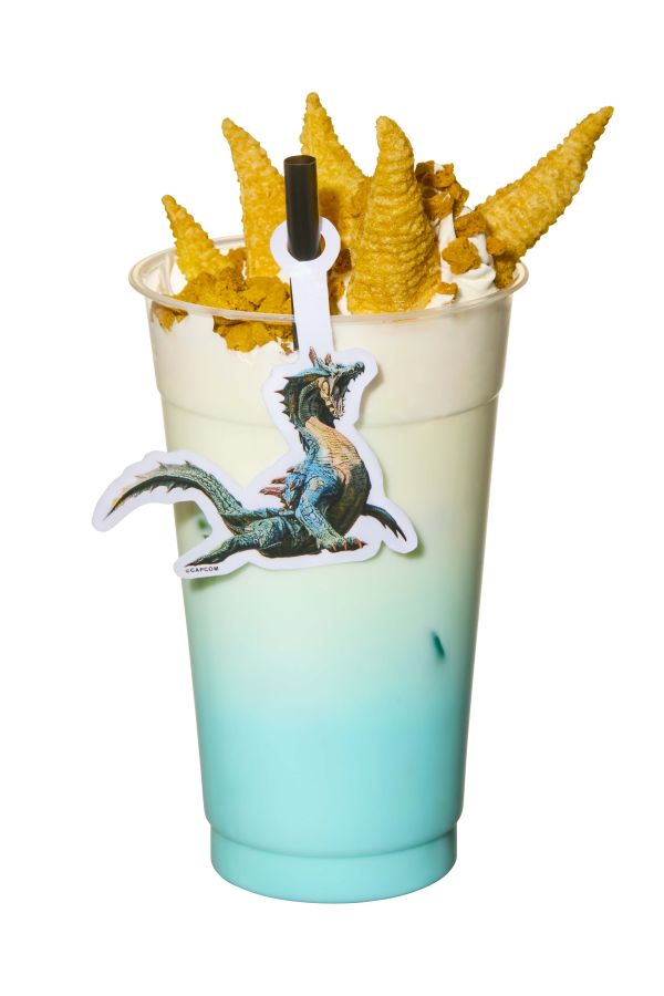 海の王者にして食物連鎖の頂点に立つラギアクルスをイメージしたすっきりとしたココナッツミルクドリンク。色鮮やかなブルーで体の色を、尖った角と海竜の背電殻をトッピングで表現。