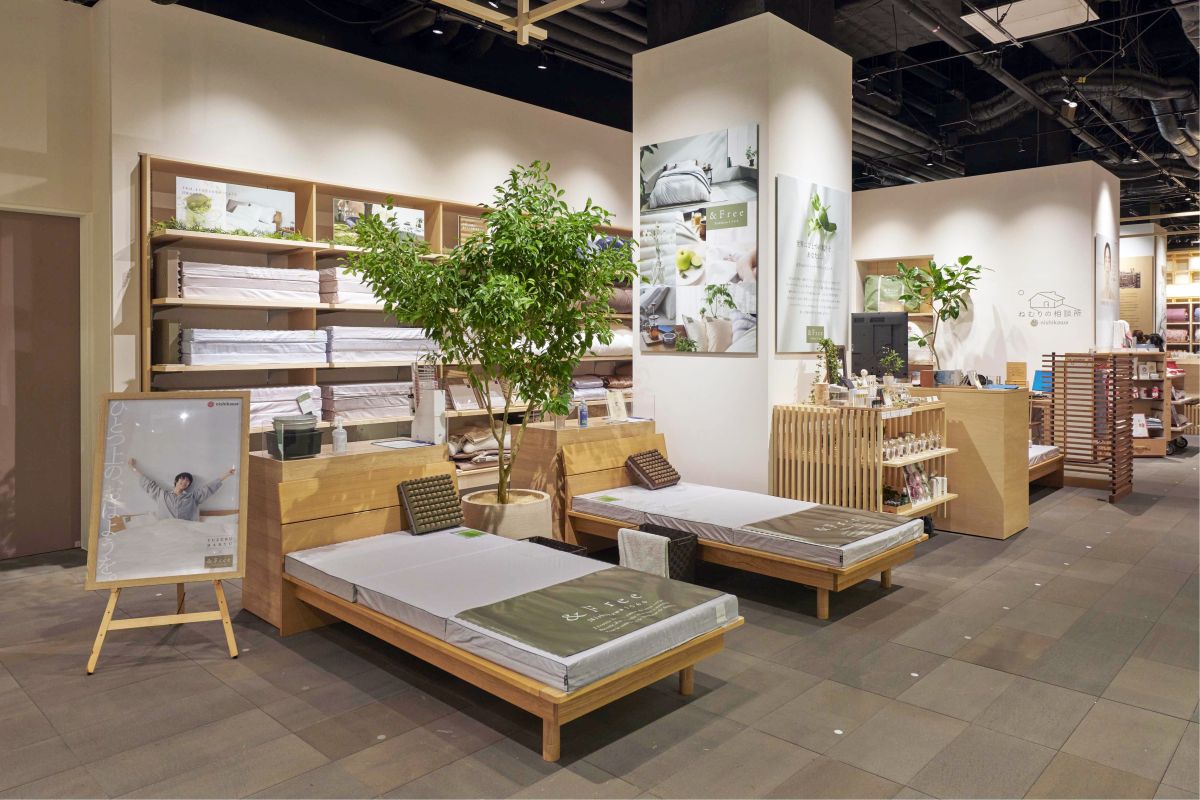 店内には人気の高機能マットレスや、パーソナルフィッティングブランド「&Free」のコーナーに加え、眠りのプロが睡眠環境改善のコンサルティングをしてくれる「ねむりの相談所」など、多彩なブースが並びます。