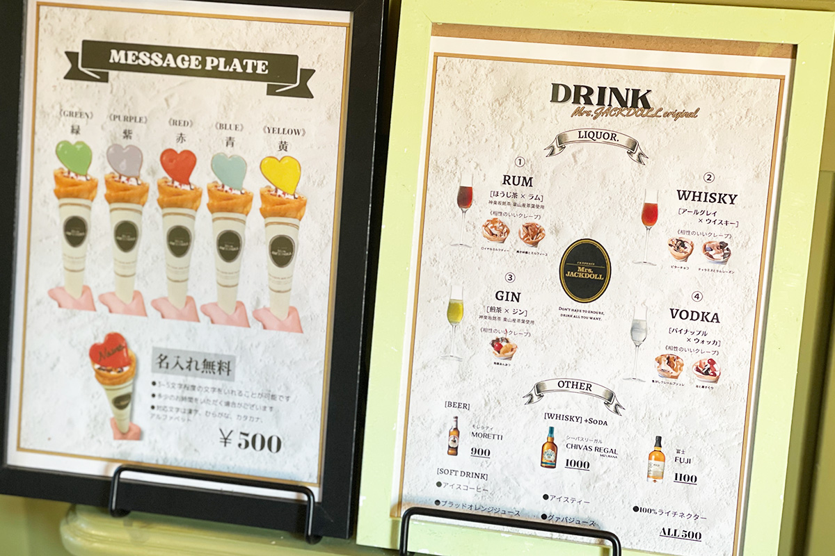 JR飯田橋駅から徒歩約4分。神楽坂を一本入ったところに「Mrs.JACKDOLL」があります。大人の街というイメージが強い神楽坂エリアで、ストリートフードであるクレープが楽しめるとして注目のお店です。