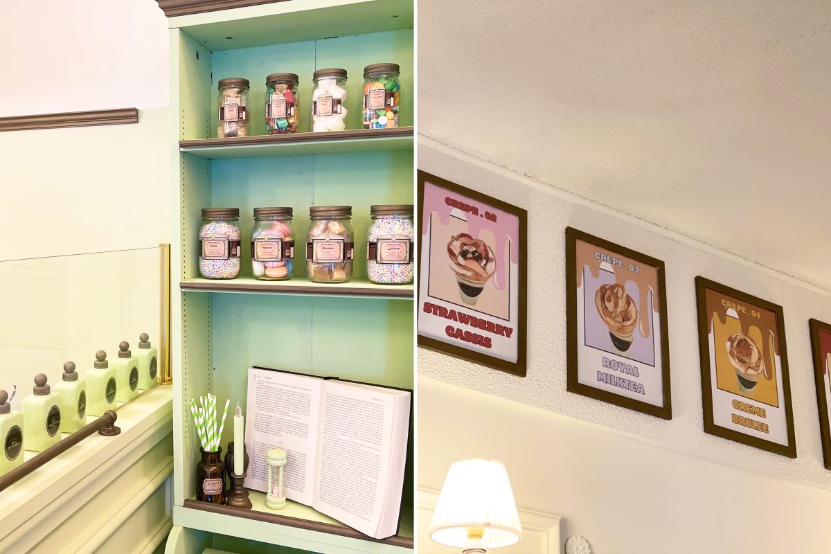 カラフルなポスターやお菓子の瓶など、ポップでかわいい装飾があちこちに散りばめられ、まるでお菓子の家を訪れたかのような気分に。