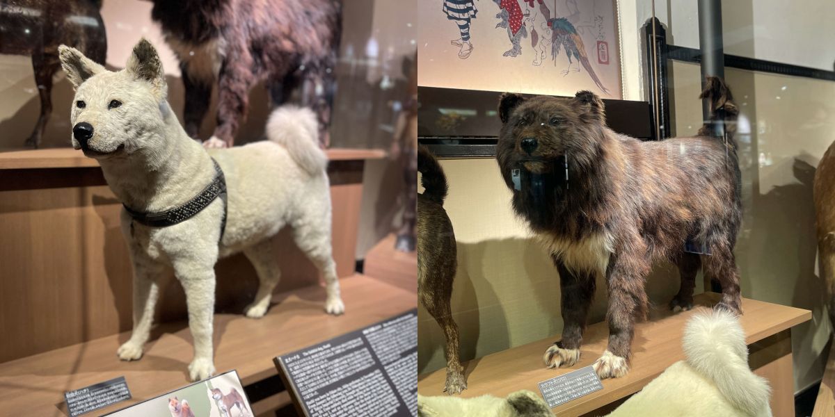 そして“科博”ならではの展示として有名なのが、「秋田犬の忠犬ハチ公」と「南極観測隊に同行したカラフト犬のジロ」の剥製です。実際に目の当たりにすると、ハチ公もジロも意外と大きくてびっくり!