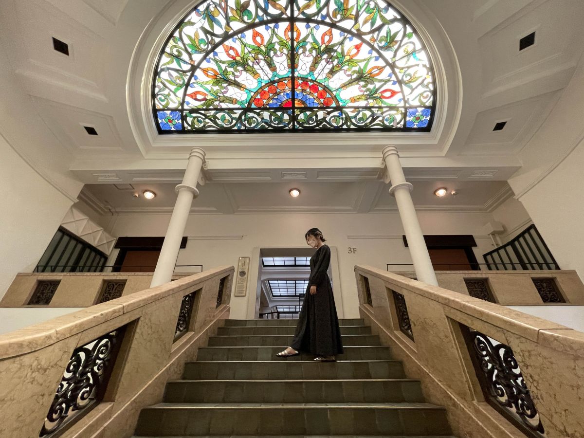 また、南翼・北翼の階段室にもきれいなステンドグラスが! 階段も洗練されていて、こんなにフォトジェニックな写真が撮れちゃいます♪