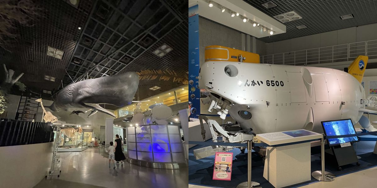 さらに、ロマンあふれる宇宙や海底に関する展示も楽しめます。なかでもおすすめは、宇宙から持ち帰った実験・観測用の人工衛星「SFU」(写真左)。こんなに大きなものを宇宙から持って帰るなんて、想像がつかないですよね…。