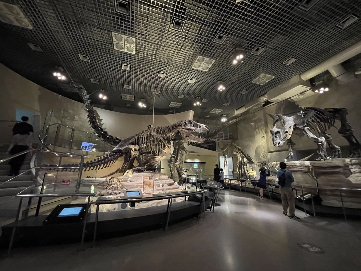 こちらは “科博”名物のひとつである恐竜の展示スペース。一度は聞いたことがあるような恐竜たちの化石標本が観られます。ここでは、「ティラノサウルス」と「トリケラトプス」が向かい合って展示されていて、まるで威嚇し合っているみたい!