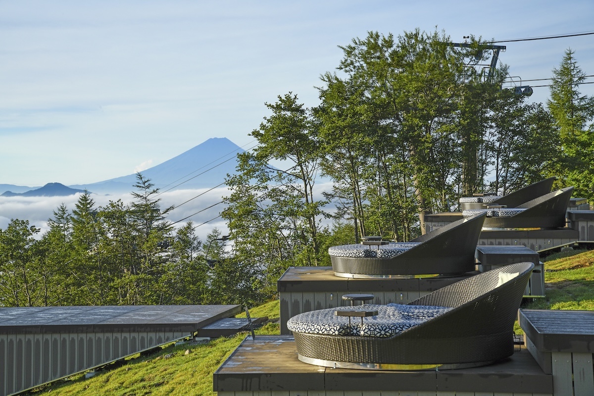 冬はスキー場になる広大な敷地内に、地元の食材が味わえるレストランやカフェ、地元の銘菓やワインなどが揃うショップが点在する「サンメドウズ清里ハイランドパーク(さんめどうずきよさとはいらんどぱーく)」。毎年4月下旬から11月上旬に営業する「清里テラス」へは、パノラマリフト(料金:往復2600円)で約10分。パノラマビューを望める人気スポットです。カフェソファで天空の絶景を楽しみましょう。