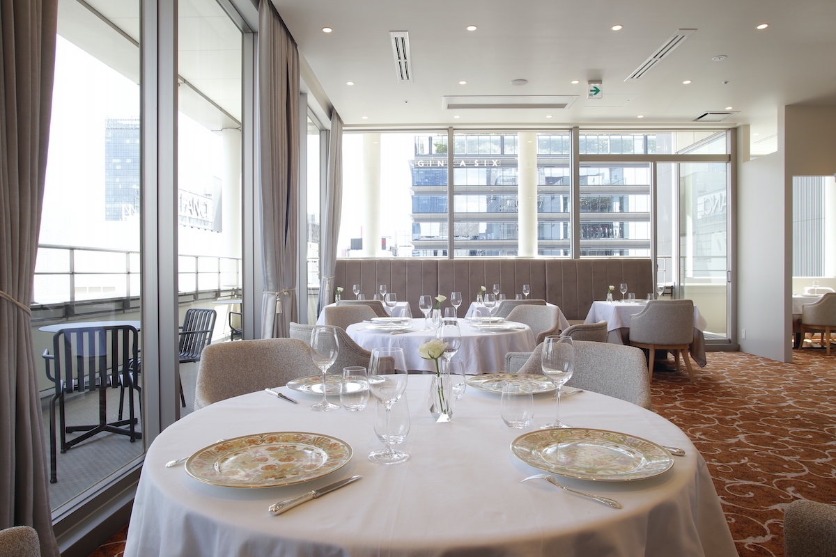 店内はホテル時代の面影を残した、上品かつ、どこかレトロな雰囲気。銀座の一等地にある高級フレンチとは思えぬ安心感があり、席につくと不思議としっくり落ち着きます。