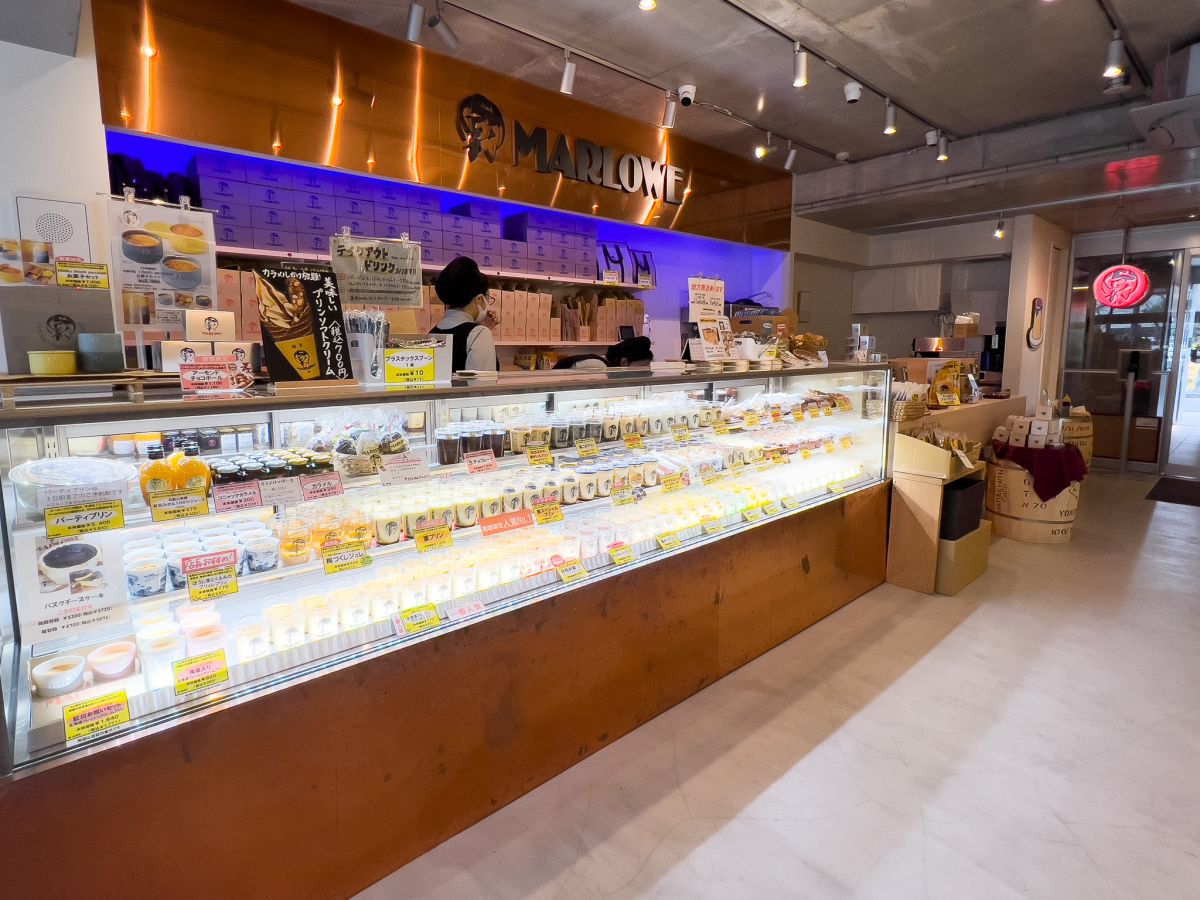 マーロウのプリンは、固すぎず、柔らかすぎない絶妙の口どけで、どれもたっぷりとしたボリュームなのに、ペロリと食べられてしまうバランスのよさ!「黒みつプリン」や「黒ごまプリン」(期間限定)など和風もあれば、フルーツを使った「ストロベリーチーズプリン」(期間限定)、「チョコレートプリン」、「ティラミスプリン」などもあり、必ず自分好みのプリンに出合えますよ。