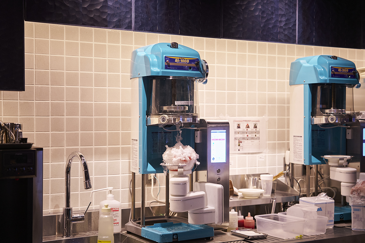 この「天然水の削り氷」は、AI搭載の調理ロボット「Kakigori Maker」と連動したかき氷機で作られています。AIに組み込まれたプログラムが安定したクオリティのふわふわの削り氷を作るため、素早い提供が可能に。まさに、温故知新の精神があふれるお店です。