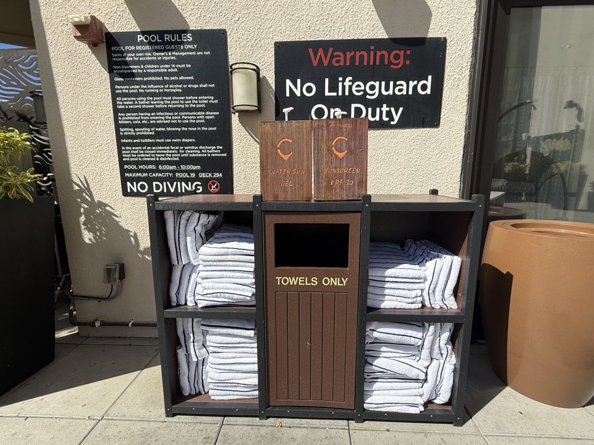 「スプラッシュラウンジ」への入口付近には、海にやさしいサンスクリーンやアフターサンジェルが置かれてアメニティが揃っているので、荷物も少なくて済みますね。