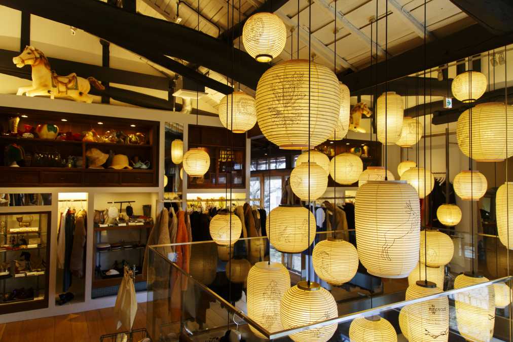 店のアイコンとなっているのが真っ白な「京提灯」。江戸時代から続く提灯工房とのコラボアイテムで、デットストックの和紙が用いられているとか。