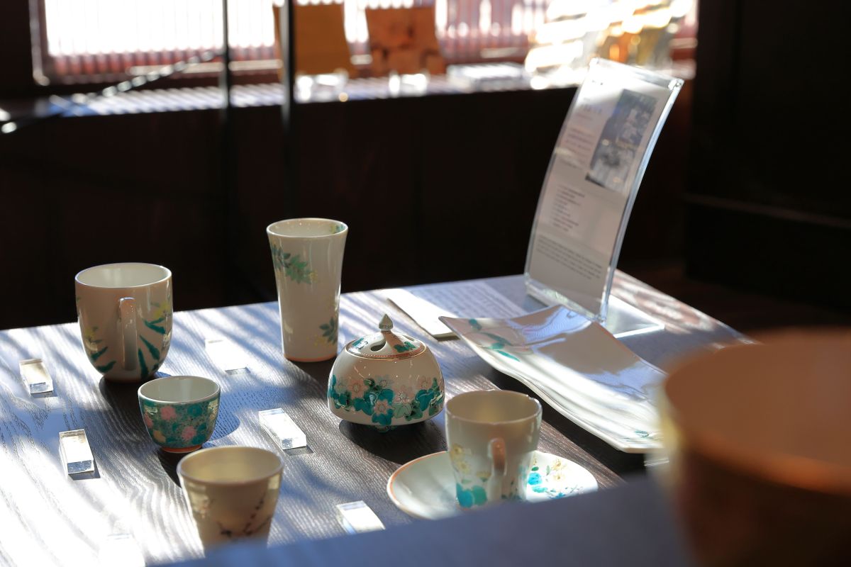 ほかにも、九谷焼、加賀友禅、山中漆器、金沢箔、金沢漆器、加賀象嵌、大樋焼など、さまざまなご当地工芸品を取り揃えています。新しいスタイルの九谷焼を発信する女性作家・大兼政花翆の和陶磁器(写真)のほか、伝統を大切にしながらも独自の感性で作品を作る新しい作家たちに出会える場でもあります。