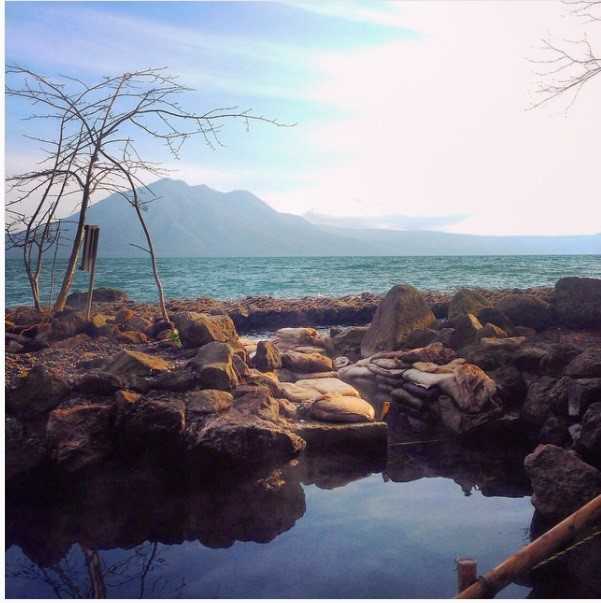 湖と1つになったような気持ちになれるここは、お湯の温度を湖の水で調整しているため、常に水位が湖と同じ。雨の多い時期は水位が上がり、冬は50㎝ほどまで浅くなることもあるんだとか。雨の多かった年に、160㎝まで水位が上がったことがあるそうですが、私もかつてロープにつかまって、入ったことがあります。