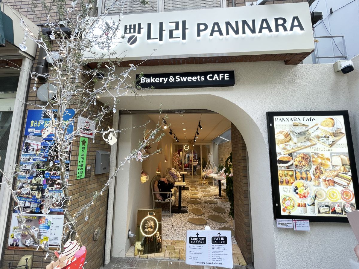 JR新大久保駅から徒歩約3分の場所にある「PANNARA」は、「リボンクロワッサン」や「ティッシュブレッド」など、流行中のパンが話題の韓国風ベーカリーカフェ。ちなみに「판나라(パンナラ)」とは、韓国語で「パンの国」という意味です。
