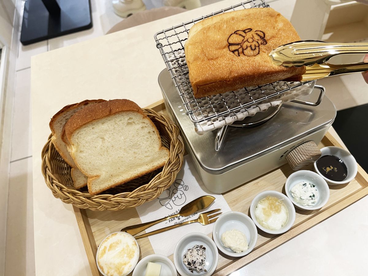 「PANNARA」で注目を集めているメニューの一つが、「クンパンセット/焼きたてトースト」。高級パンナラ食パンを一斤、自分でトーストして食べることができるんです。ちなみに「クンパン」とは、韓国語で「よい匂い」という意味なのだとか。