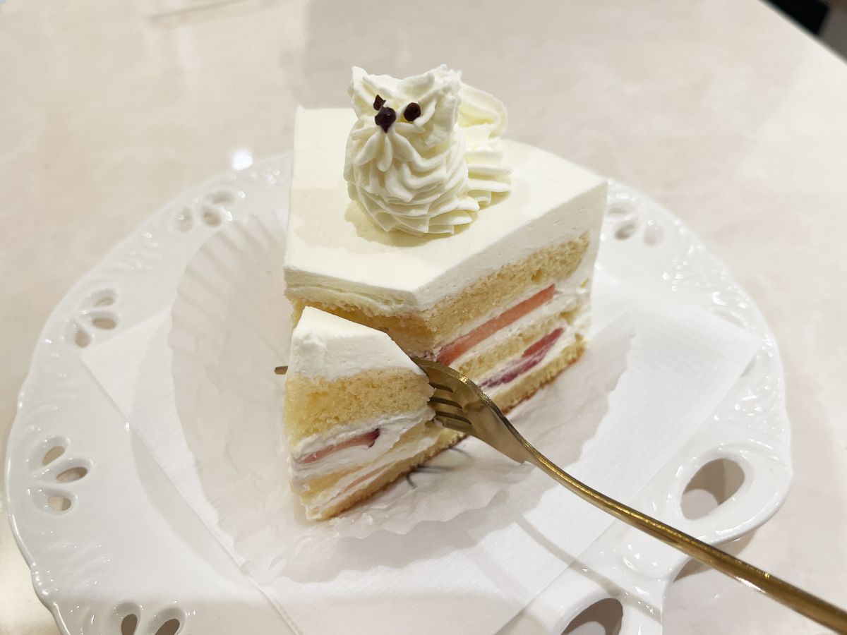 スポンジケーキはふわふわで、濃厚なクリームとマッチしていておいしい! 中にはスライスされたイチゴもたっぷり入っているので、満足すること間違いなしです。