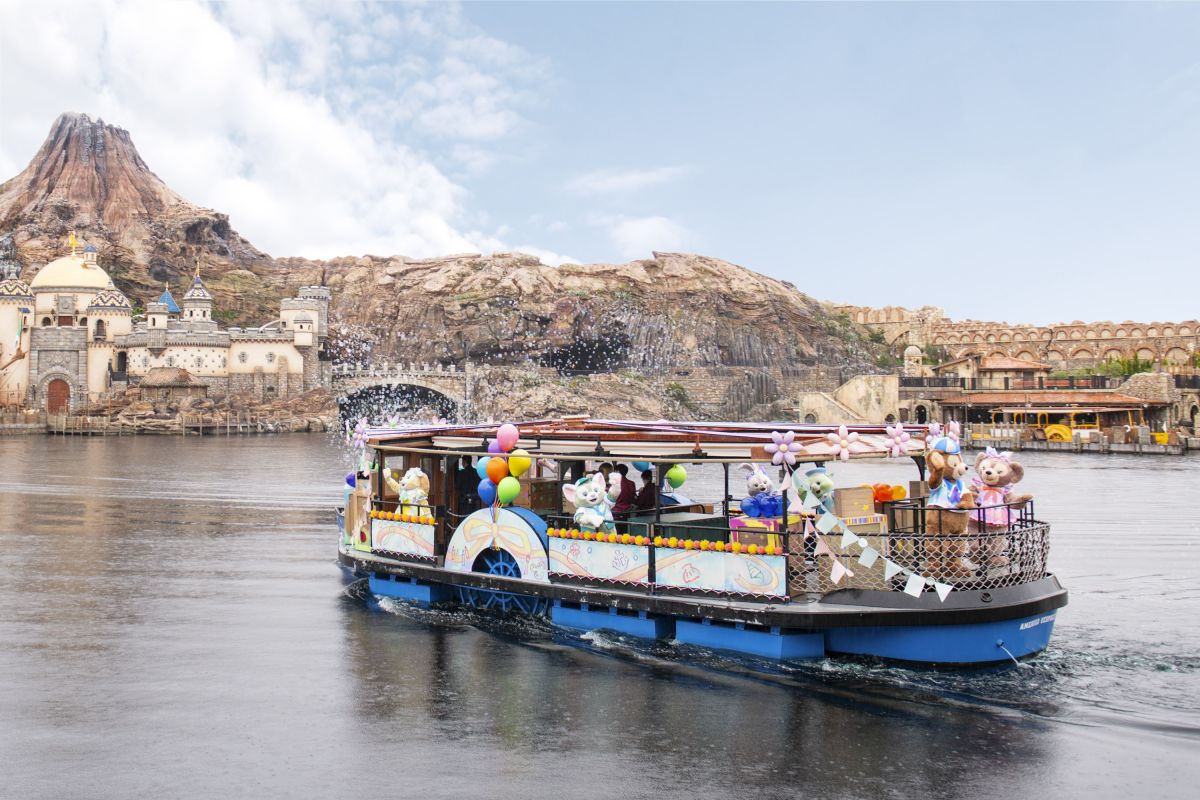 ダッフィー&フレンズが自分たちで飾り付けた1隻のディズニーシー・トランジットスチーマーラインに乗って、パーク全域を巡ります。
