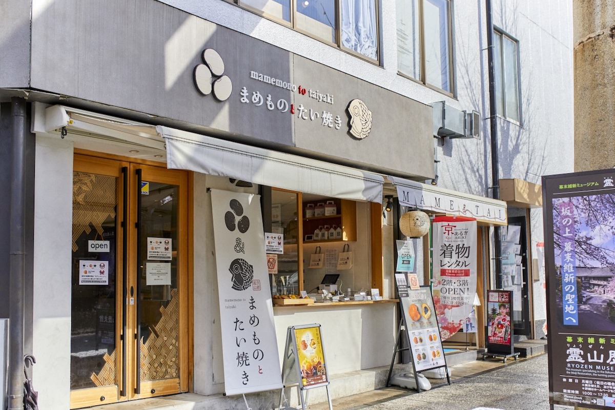 氷で冷やした厚切りバターを添えた、“消費期限1分”のたい焼きで有名な「まめものとたい焼き」。嵐山と並び京都の2大観光名所ともいうべき清水寺周辺エリアに2024年12月新しく「まめものとたい焼き 高台寺店(まめものとたいやき こうだいじてん)」がオープンしました。