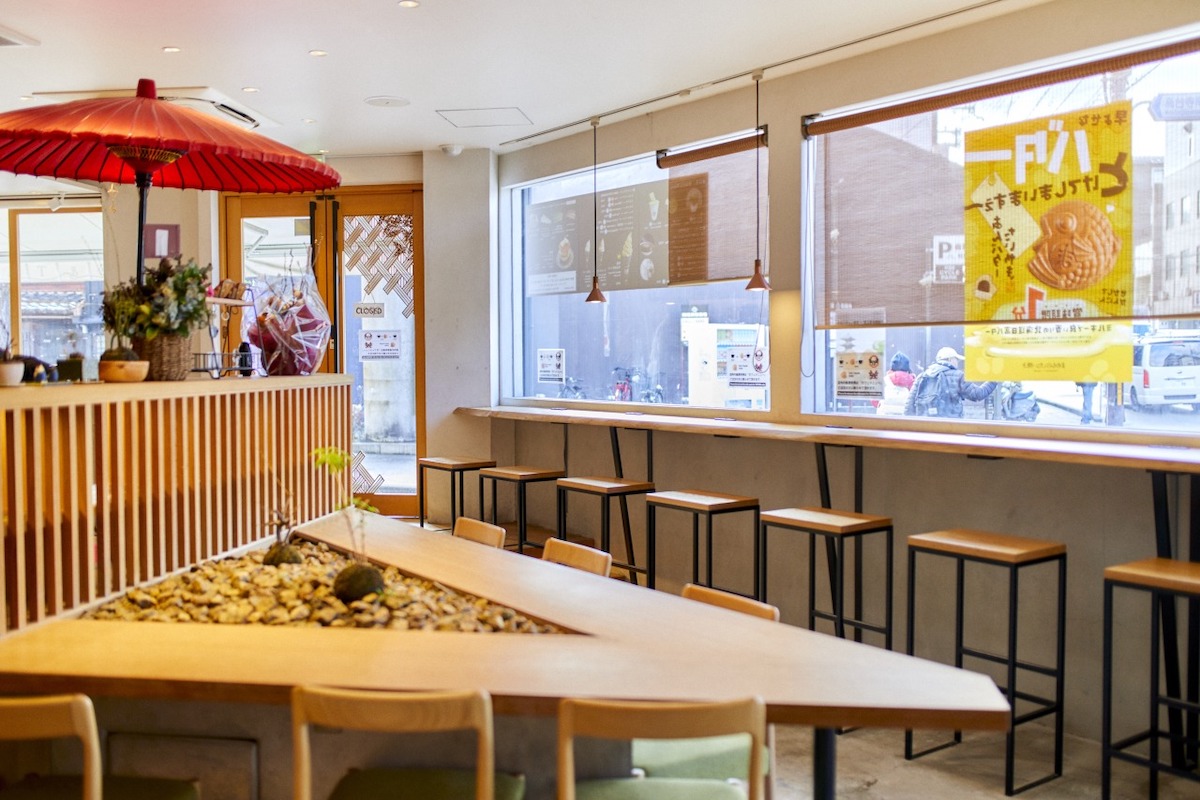 観光地で食べ歩く楽しさもありますが、座ってゆったりとたい焼きの味を満喫したいと思っていた人にもうれしいカフェコラボ店。バスでのアクセスでも、電車でのアクセスでもわかりやすい東大路通り沿いにあるので、立ち寄りスポットとしてチェックしてみては。