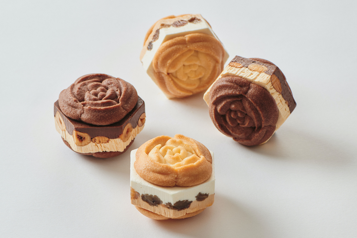フレーバーは「ミルクバターレーズン」と「プラリネチョコレート」の2種セットです。「ミルクバターレーズン」は、北海道ミルクのコクとブルターニュ産発酵バターのクリームに、世界三大貴腐ワイン “ソーテルヌ” 香るレーズンが弾む芳醇なおいしさが特徴。