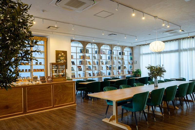 店内もアンティーク調の家具や照明などで統一され、非日常の穏やかな時間が流れています。落ち着きのある色合いのテーブルと椅子が並び、店に入った瞬間、緊張がほぐれるような居心地のよさを感じます。