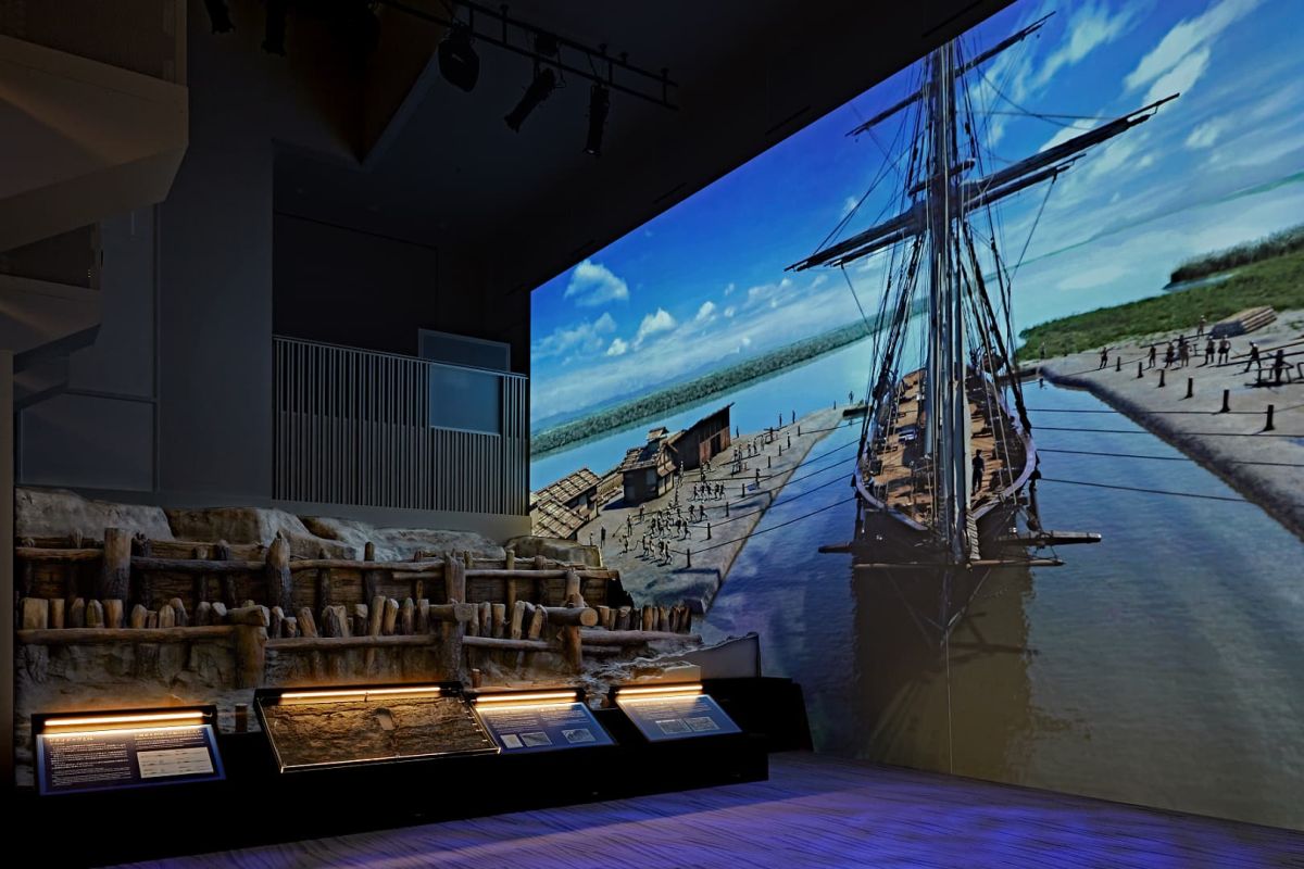 「三重津海軍所跡」は幕末、佐賀藩の洋式海軍の拠点だった場所。佐賀藩は長崎の警護を務めていて、佐賀城下に近く、長崎にも向かいやすい三重津では、海軍教育や訓練、船の修理や建造が行われ、日本初の実用蒸気船「凌風丸(りょうふうまる)」も造られました。現在、三重津海軍所跡の大部分は歴史公園として整備され、隣接する「佐野常民と三重津海軍所跡の歴史館」は体感型の展示施設になっています。