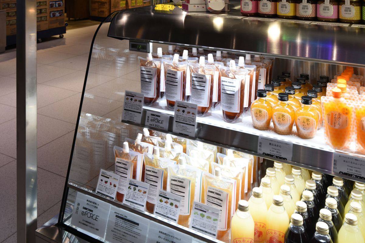薬剤師が開発したギルトフリードリンク「 e:FORCE」850円など、東京ではなかなか手に入らないご当地食品などもあり、見つけたら即買いがマスト。また地域や生産者のPOPUPやガチャガチャも展開しているそう。おみやげ選びにはもちろん、どんな商品が並んでいるか眺めるだけでも楽しめそうです!