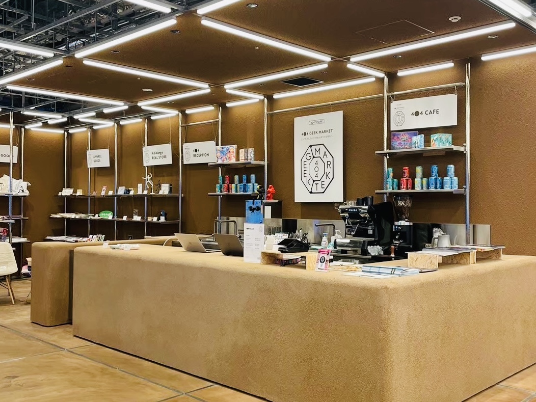 最後にご紹介するのは、ゲーム、アート、音楽などさまざまなジャンルで活躍するクリエイ ターの活動拠点である「404 Not Found(よんまるよん のっと ふぁうんど)」。イベントスペースでは期間ごとにさまざまな展示や体験が楽しめます。イベントスペースに併設されたグッズストアとカフェは誰でも利用可能です。