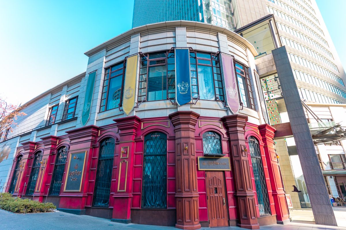 赤坂Bizタワーに入る「Harry Potter Cafe」は、その名の通り「ハリー・ポッター」にインスパイアされたカフェ。平日も週末も国内外問わず多くのハリー・ポッターファンで賑わいます。外観は思わず目を引く赤い壁に「ハリー・ポッター」の4寮のシンボルフラッグが並び、写真映え抜群!