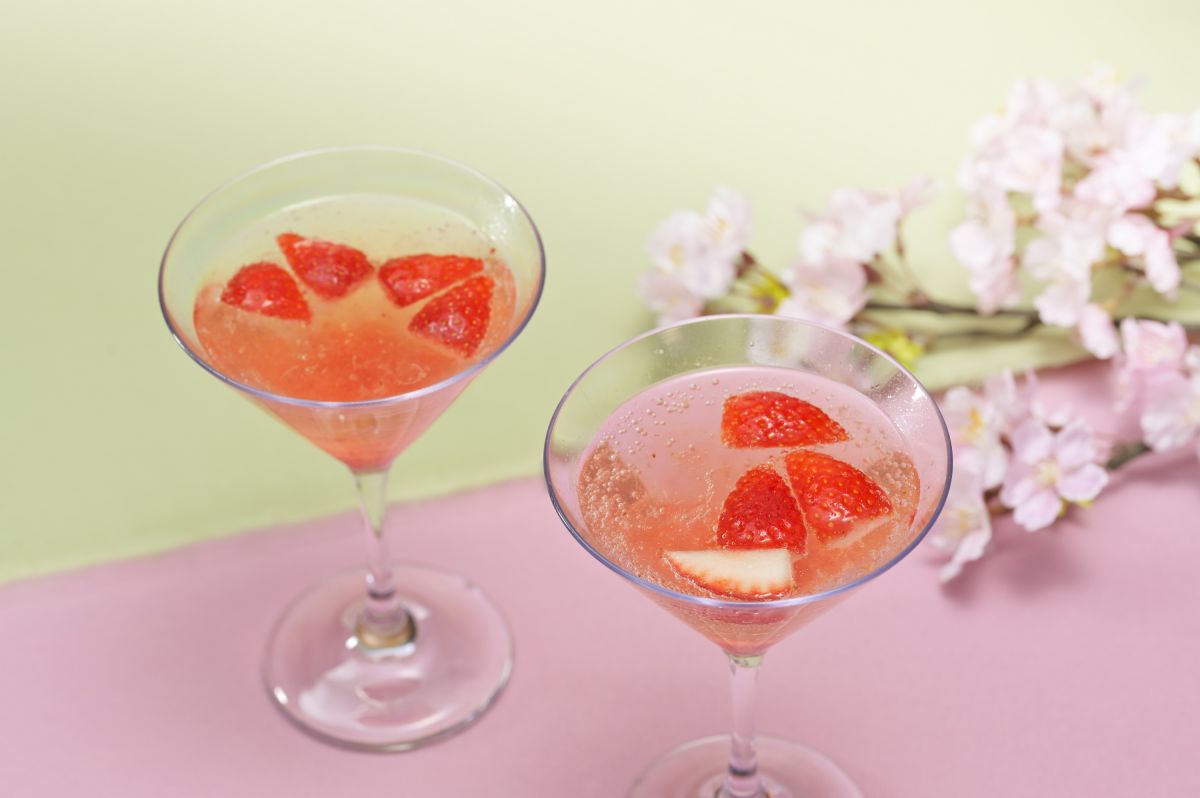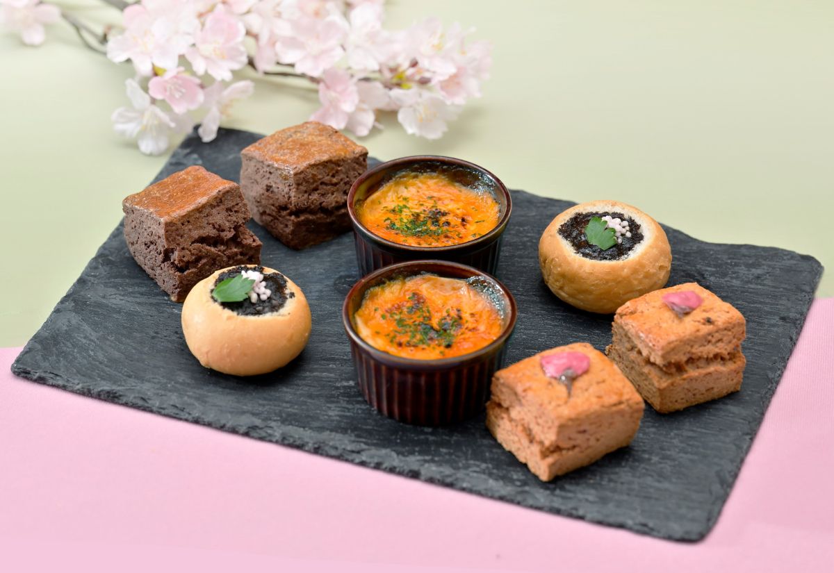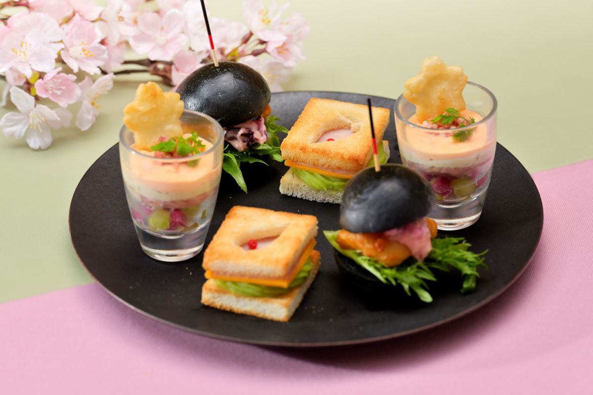 イチゴソースと桜のゼリーにソーダを合わせた、華やかなアミューズ。鮮やかなドリンクが春のアフタヌーンティーの始まりを彩ってくれます。