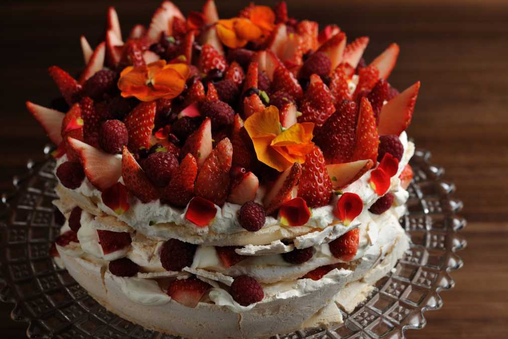 それは、見た目も華やかで美しい「イートン・メス・パブロヴァ」(1ピース700円)。メレンゲを焼いたものに、ホイップクリームとベリーをサンドして、上にはイチゴやラズベリー、フランボワーズ、ざくろなどのフルーツをたっぷりとのせています。