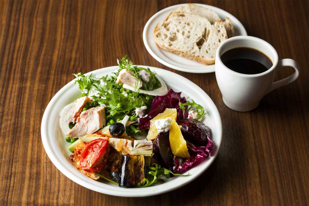 ランチセットは、3種類のデリとドリンクが付いた「3CHOICE SALADS」(1380円)と、2種類のデリにホットディッシュとドリンクが付いた「2CHOICE SALADS 1CHOICE HOT DISHES」(1580円)。