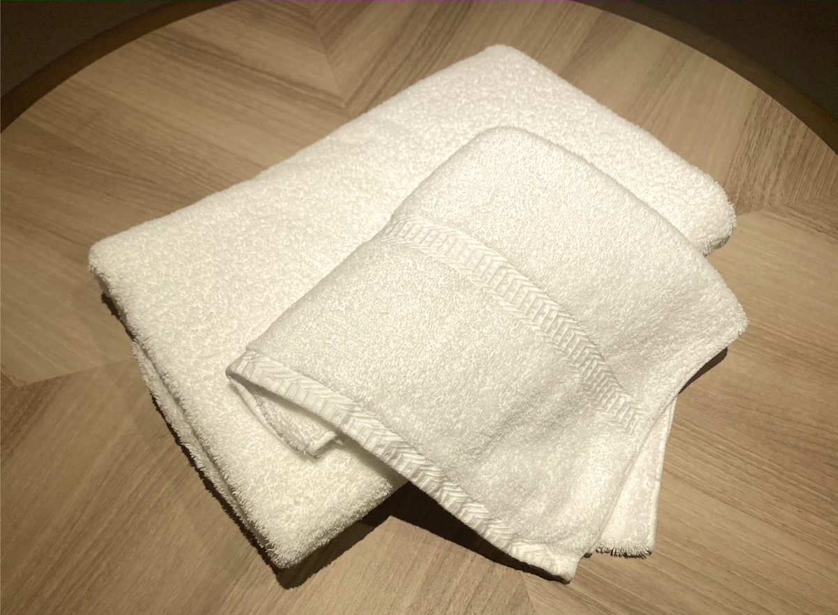 タオルは一般的なバスタオルとフェイスタオルを用意。ほどよい厚みとサイズ感が申し分ない使い心地です。