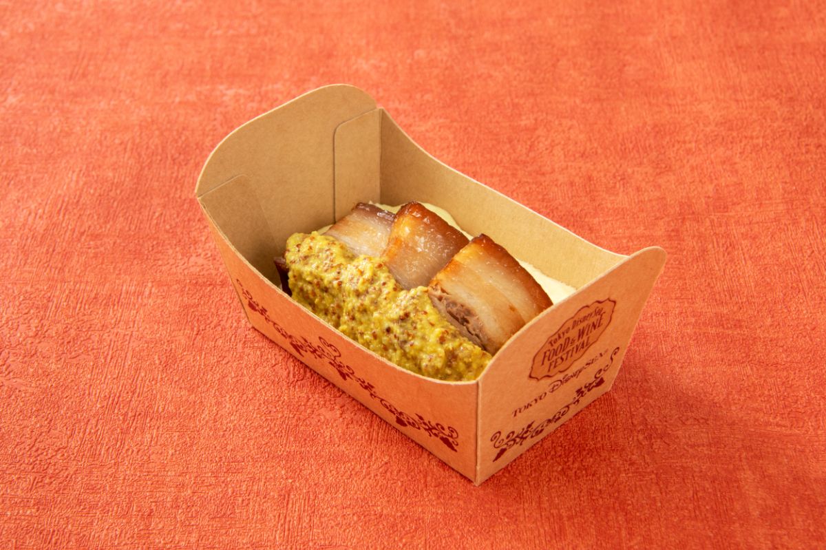 豚の角煮に、アップルピュレを加えたマスタードソースをトッピング。マッシュポテトも添えてアメリカらしさをプラスした一品。